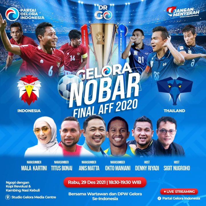 Hard News | • 28 Desember 2021 • Dukung Timnas Indonesia di Final Piala AFF 2020, Partai Gelora Gelar Acara Nobar Partai Gelora Indonesia akan menggelar acara nonton bareng (Nobar) Final Piala AFF Suzuki 2020 yang...