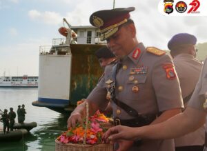 Usai upacara darat, prosesi dilanjutkan di tengah laut pada pukul 08.30 WITA. Dengan menaiki Kapal Punai 5009, rombongan melakukan tabur bunga di lautan sebagai simbol penghormatan tulus bagi para Bhayangkara yang telah berkorban jiwa dan raga demi menjaga keamanan dan ketertiban negara.