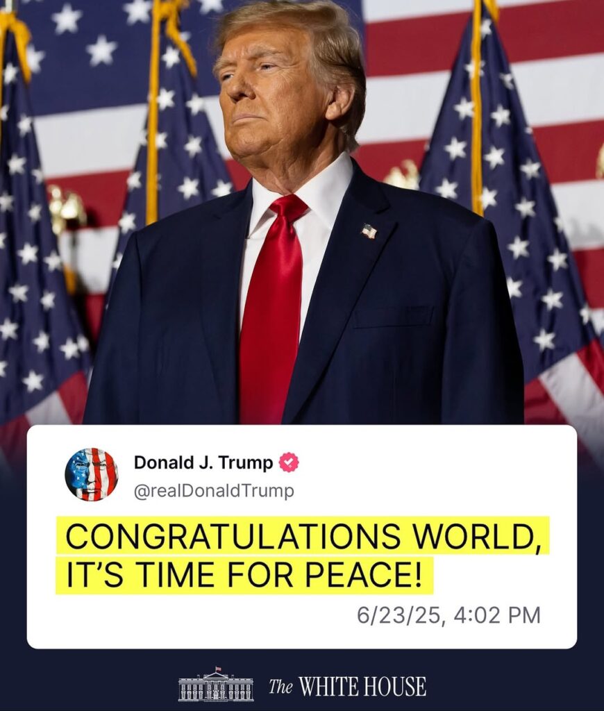 Trump menutup pernyataan tersebut dengan seruan perdamaian global: “Tuhan memberkati Israel, Tuhan memberkati Iran, Tuhan memberkati Timur Tengah, Amerika Serikat, dan seluruh dunia!”