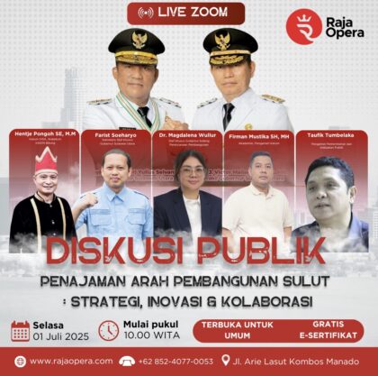 Berita | Politik | • 5 Juli 2025 • Diskusi RajaOpera Ungkap Gubernur Sulut YSK Gaspol! Strategi Gila-gilaan Bangun Daerah Lewat E-Governance, SDM dan Pariwisata Hijau ROC, Manado – Pemerintahan Gubernur Sulawesi Utara Yulius Selvanus Komaling (YSK) bersama Wakil Gubernur Victor...